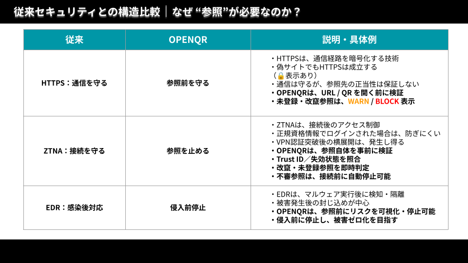 OPENQR™は、QRのリンク先を参照前に検証する仕組みを提供します。