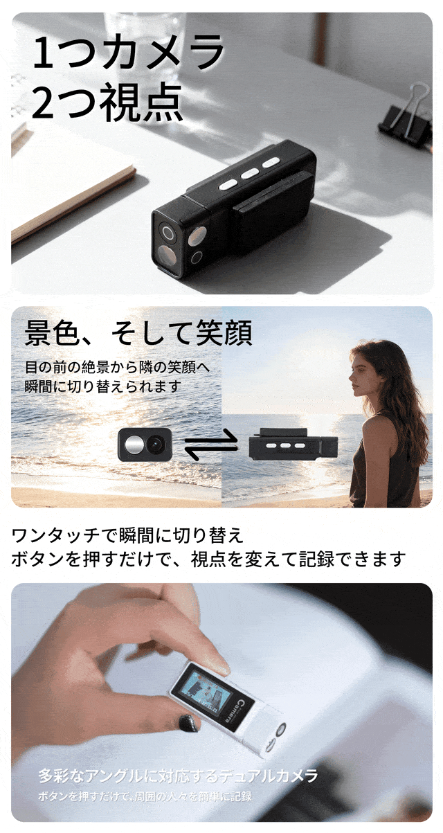 両視点を一瞬で切り替え!デュアルレンズ搭載の超小型カメラ「SRTK CAM」。1時間で100%目標金額を達成しました!。今なら最大42%OFF!