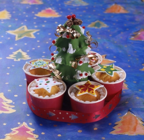 素敵な星を飾ったカップケーキに囲まれたクリスマスツリーと、梅とチーズのケーキ。一見ミスマッチのようですが、口の中で広がる美味しさは格別です。