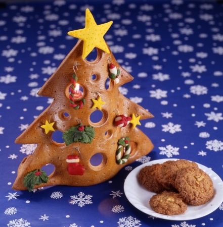 クリスマスにちなんだ小物でツリーを飾り、穴からロウソクの光が見えるロマンチックなパン「こもれびツリー」と、全粒粉入りの美味しい簡単クッキーを作ります。