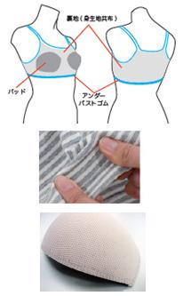 むれにくいカップを実現致しました。バストに合わせた形状の肉厚パッドと、