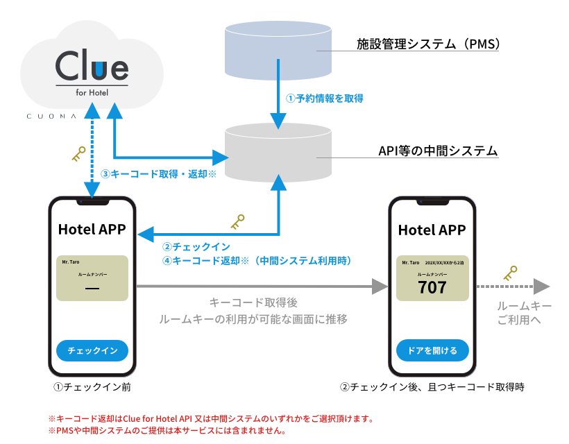 Clue for Hotelを実装したスマートフォンアプリでは、次が一連の動作の流れとなります。