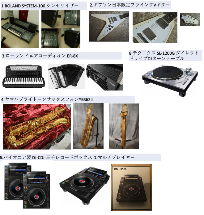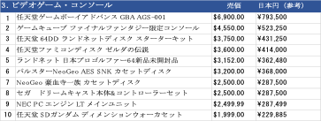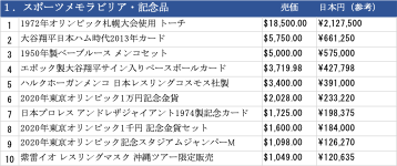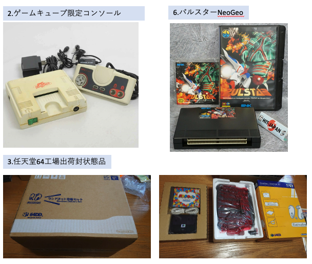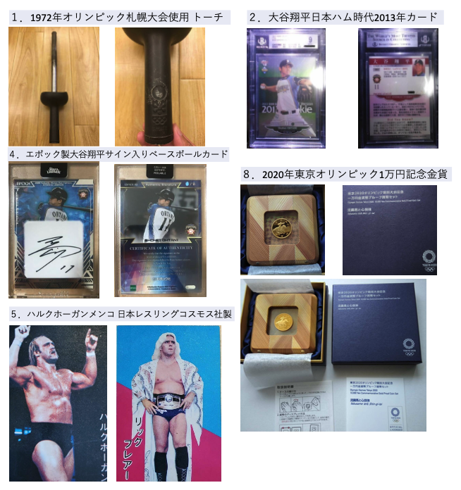 (1)スポーツメモラビリア・記念品 (2)音楽・楽器類 (3)ビデオゲーム・コンソール