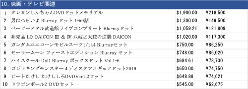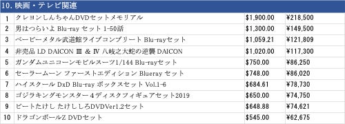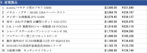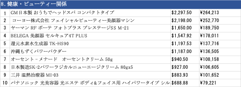 (8)健康・ビューティー関係 (9)家電製品 (10)映画・テレビ関連