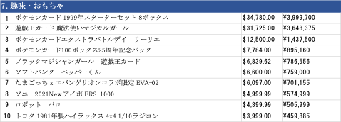 ・集計対象:日本の販売事業者が eBay.com で販売して実際に販売済みとなった販売データからの抽出