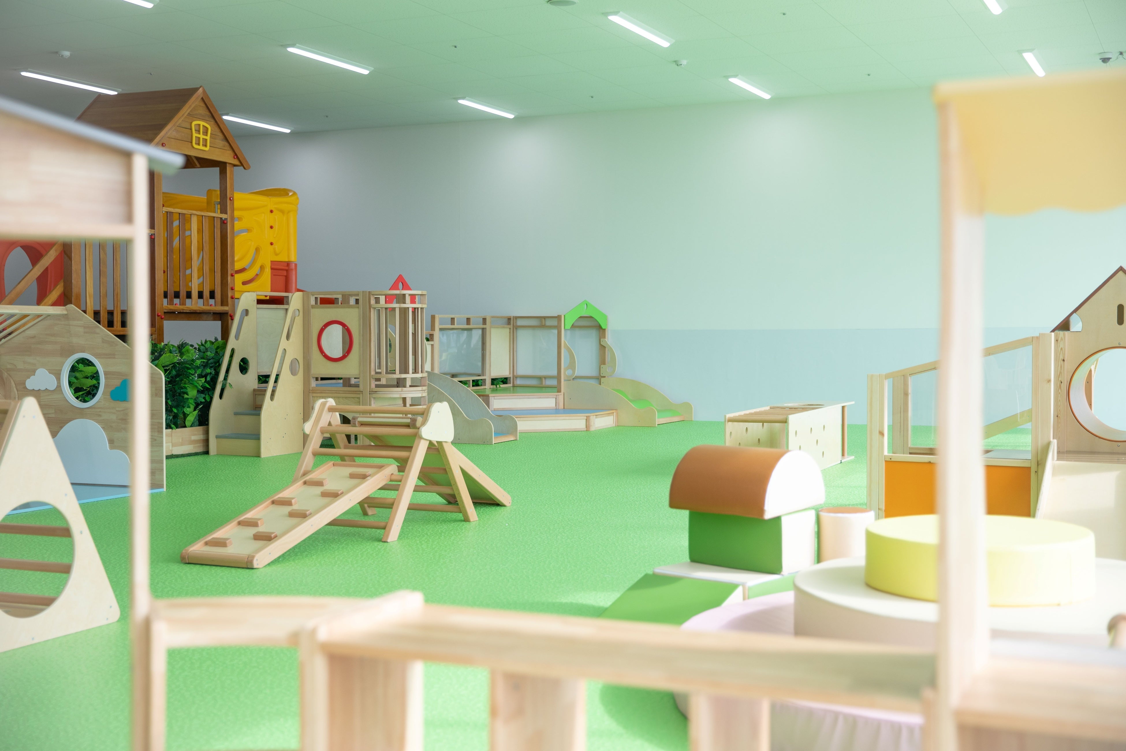 エリア、と区分けをしているので安⼼してあそぶことができ、パーク内には多数のソファがあり⼀息つきな