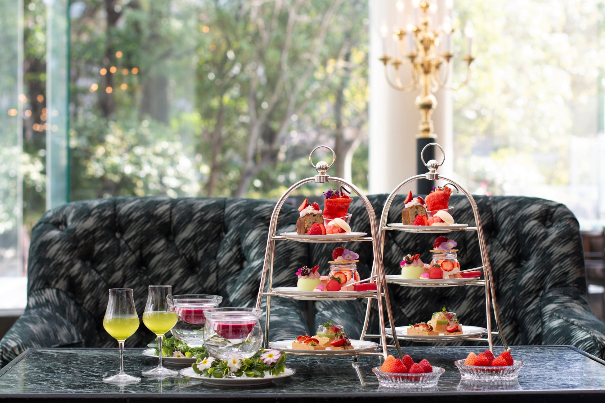 ロビーラウンジでは、福岡県産ブランド品種のいちご「あまおう」と特産品の八女茶を使用したアフタヌーンティーをご提供。ウェルカムドリンクには、春の訪れを感じる軽やかな味わいの八女茶のアイスティーで皆さまをお迎えします。さらにいちごの魅力を贅沢に味わえるよう、あまおうを含めた国産いちご5種盛りの食べ比べオプションプランもご用意しております。