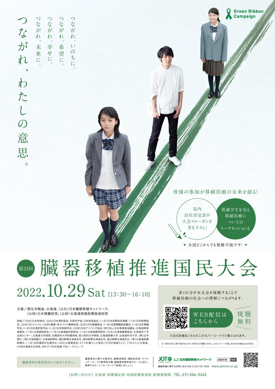 日本臓器移植ネットワーク(本部:〒108-0022 東京都港区、理事長:門田 守人、以下「JOT」)は、厚生労働省、北海道、(公財)日本腎臓財団、(公財)北海道移植医療推進財団とともに、北海道にて「第23回臓器移植推進国民大会」を開催いたします。