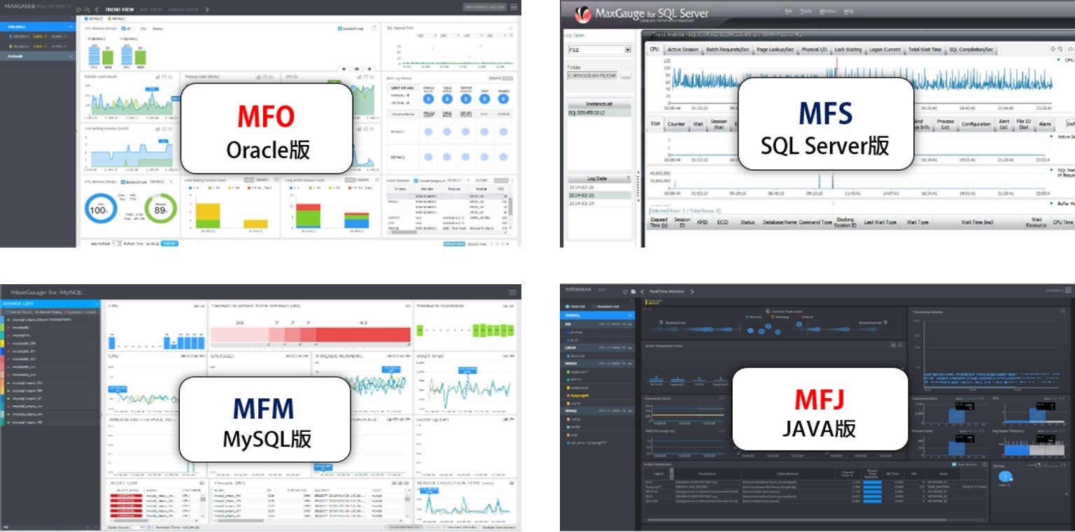MaxGaugeは、稼働情報を取得する対象となるサーバー環境にあわせて4種類が用意されています。