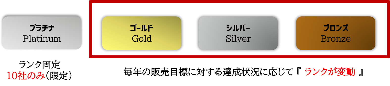 年間販売目標数の達成状況に応じて、翌年のパートナーランクが変動します。