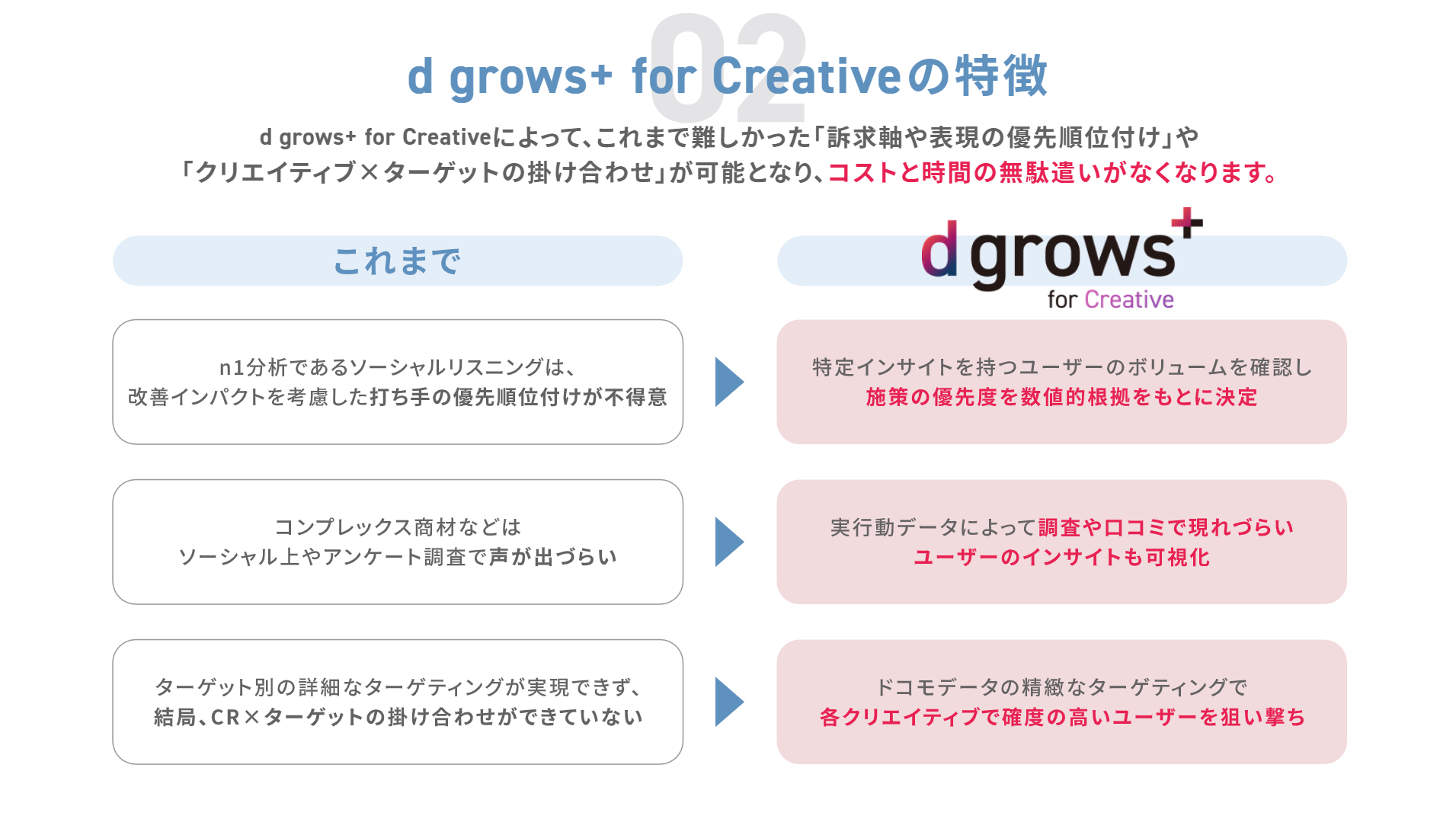ドコモデータを活用した広告ソリューション「d grows+」を提供開始~第一弾として、「d grows+ for Google」「d grows+ for Creative」をリリース~