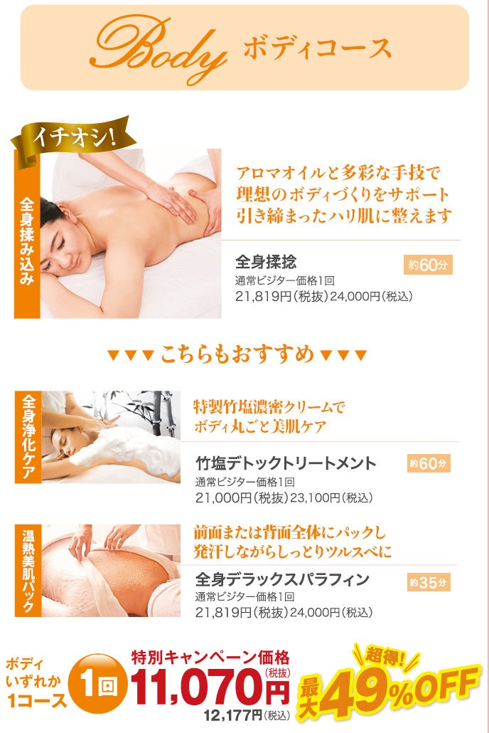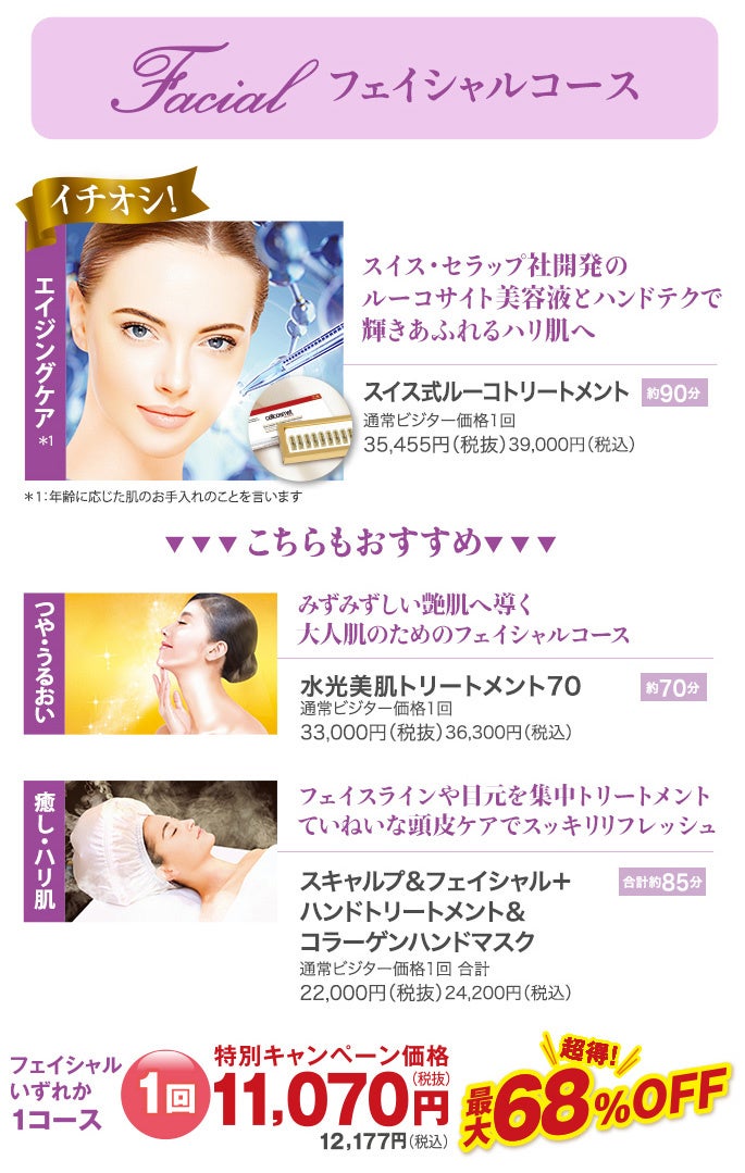 人気フェイシャル・ボディからそれぞれいずれか1コースを1回ずつ
