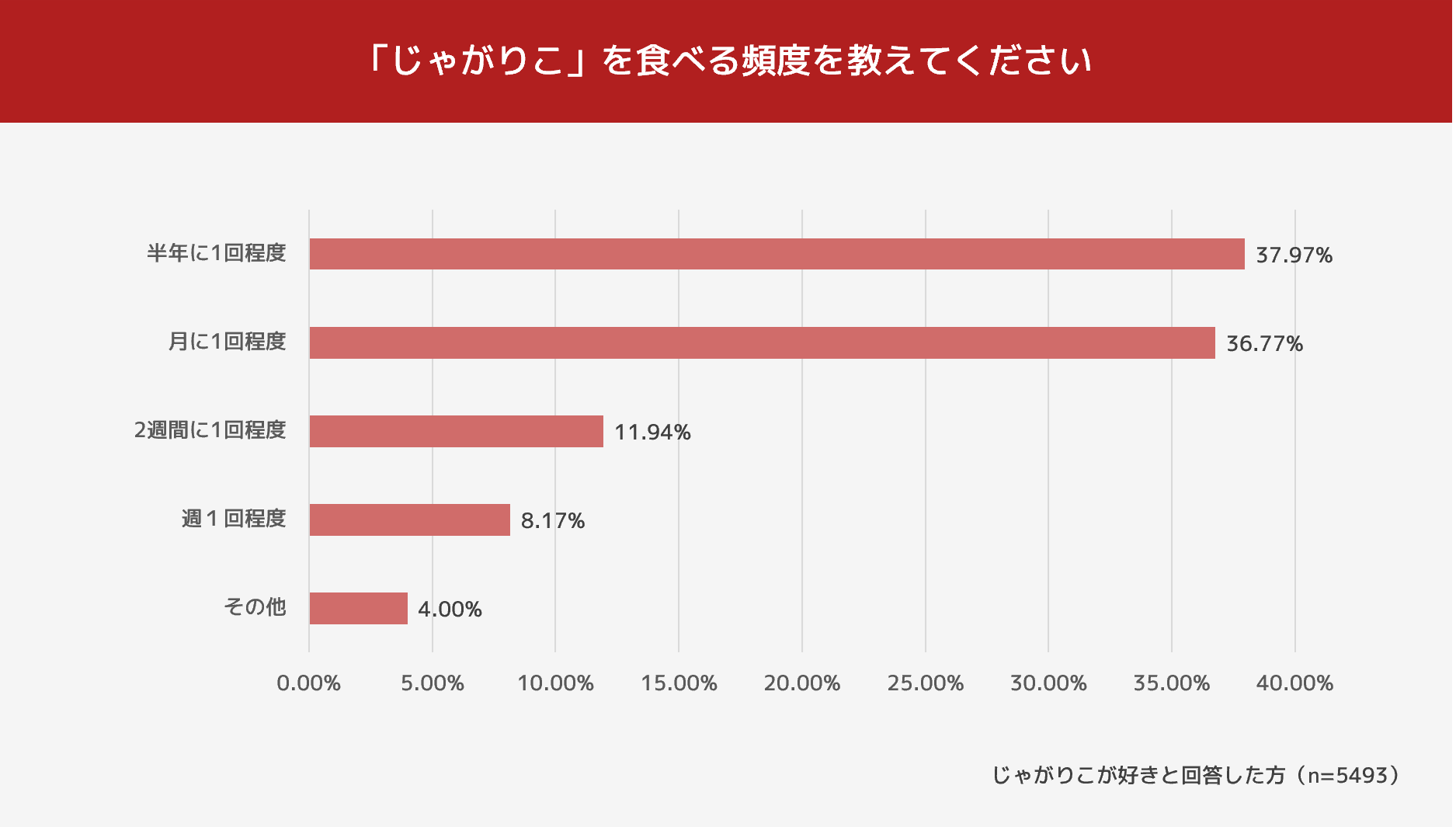 - 約5割の方が月に1回以上は「じゃがりこ」を食べていることが判明