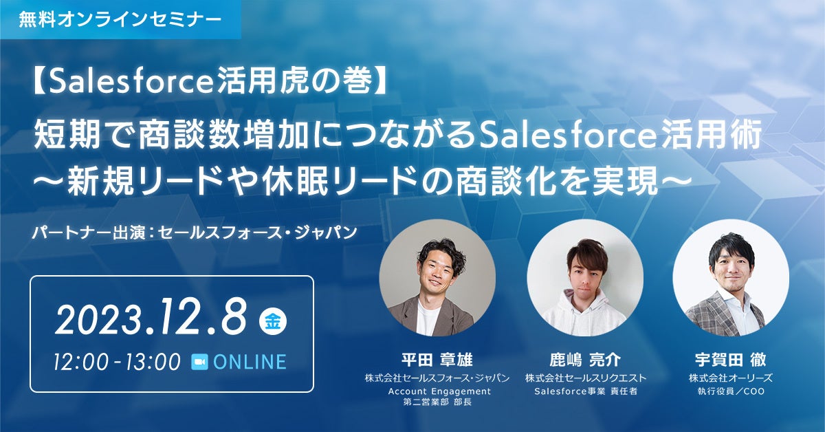 【12/8(金) 開催】Salesforceパートナー出演!『短期で商談数増加につながるSalesforce活用術』をウェビナーにて徹底解説