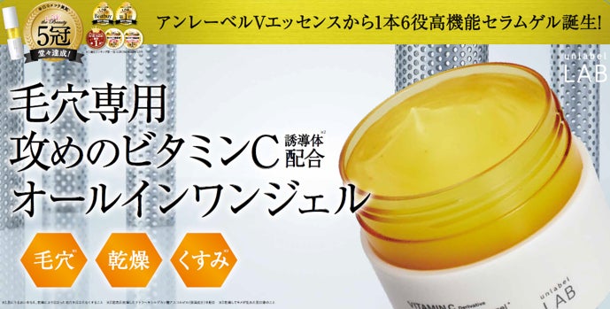 アンレーベルの高機能シリーズライン「アンレーベルラボ」の大人気Vシリーズより待望の高機能オールインワンジェル新登場!1本で6役のマルチな高機能オールインワンゲル誕生。