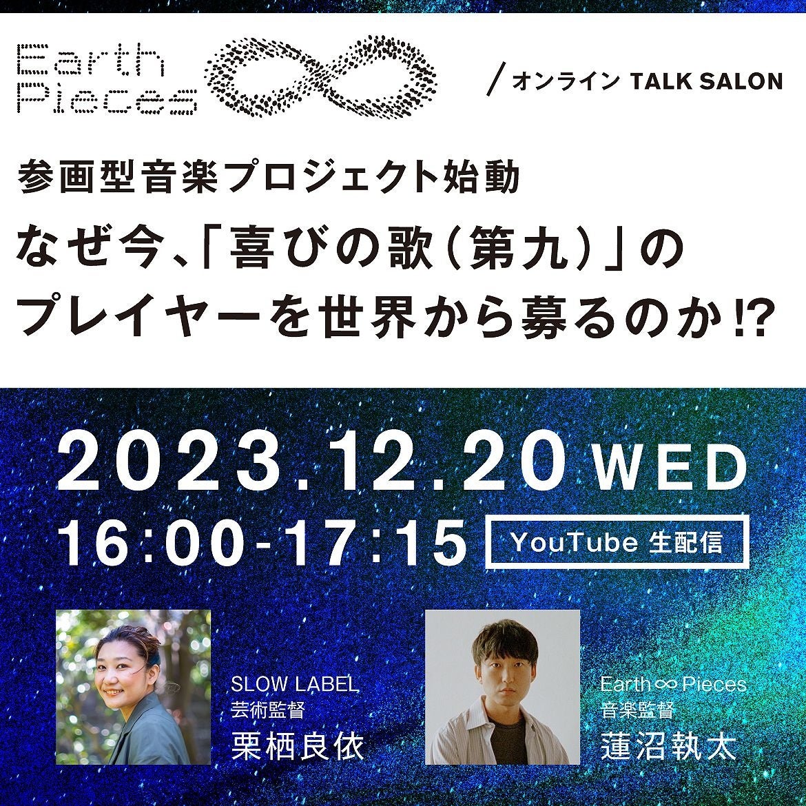 プロジェクト始動に先駆け、栗栖良依と蓮沼執太によるトークサロンを開催します。プロジェクトの背景や各募集カテゴリーの説明と今後の展望について語ります。