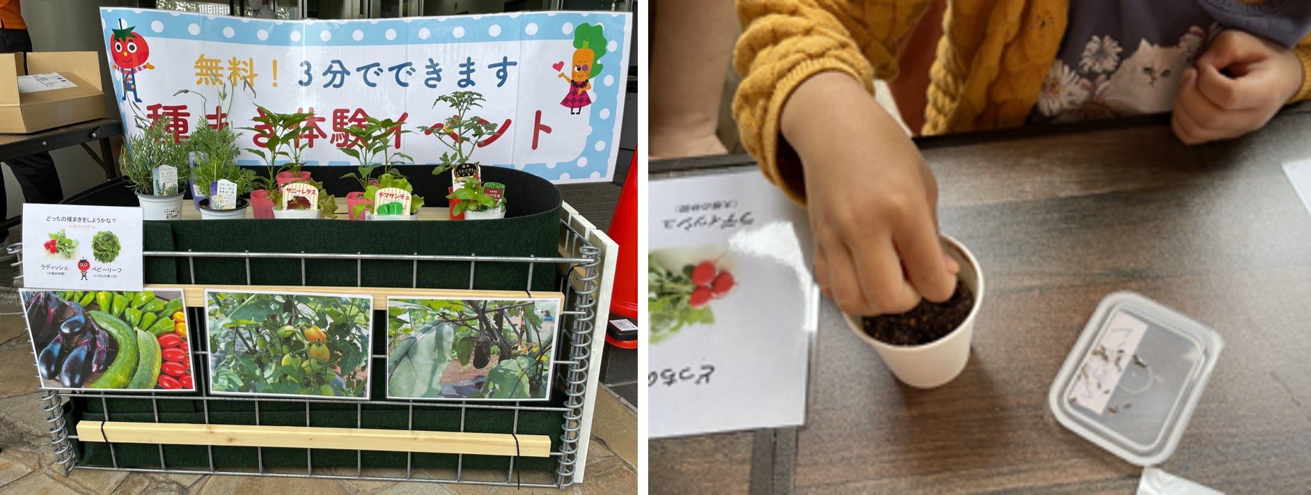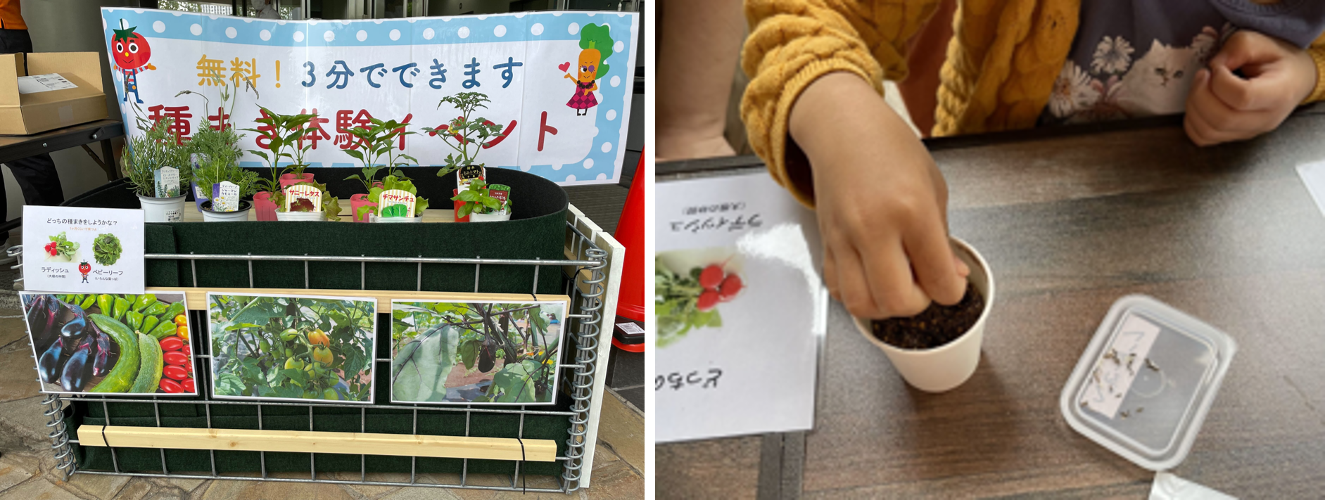 写真:左『イベント当日の様子』、右『ラディッシュの種まき』