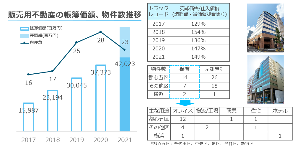 2021年12月期は小型物件を中心に売却を進めました。大型物件は2022年12月期以降のパイプラインとして確保しています。