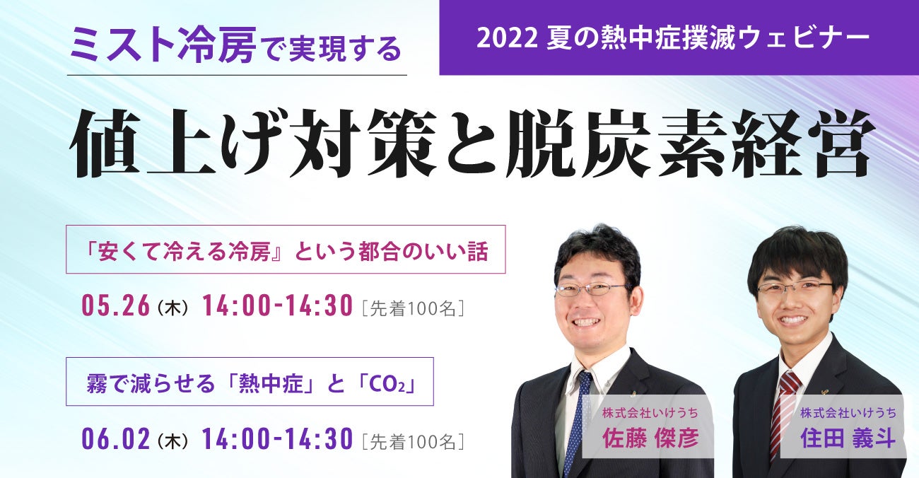 [5/26&6/2 無料ウェビナー] ミスト冷房で実現する『値上げ対策と脱炭素経営』ウェビナー開催