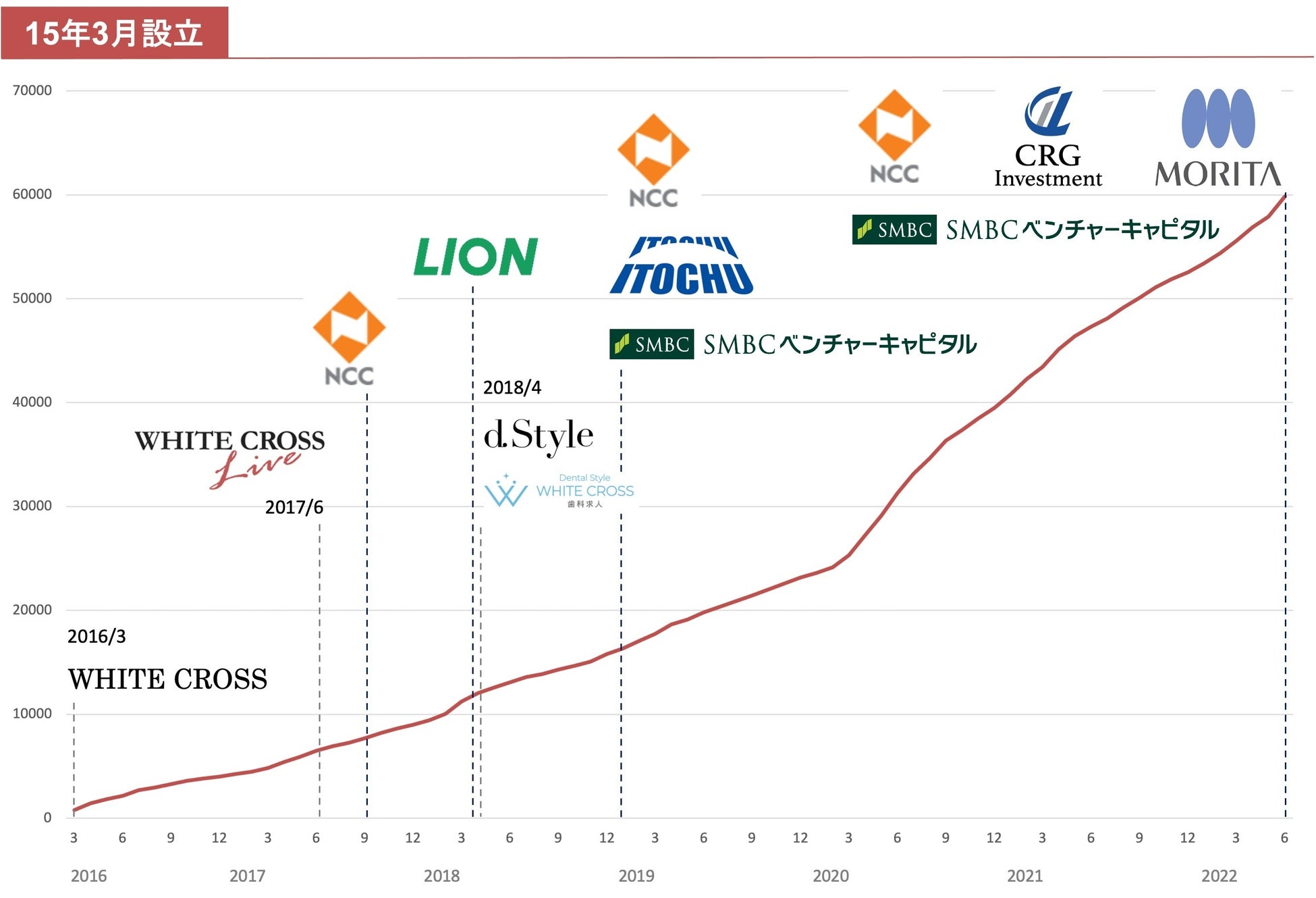 歯科業界専門のデジタル・プラットフォームを運営するWHITE CROSS株式会社は、歯科商社最大手のモリタ社をはじめ、既存株主であるニッセイ・キャピタル株式会社、SMBCベンチャーキャピタル株式会社、新たにCRGインベストメント株式会社や個人投資家複数名を引受先とする第三者割当増資を完了いたしました。