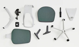 脱炭素化に向け、リサイクル可能率(85%)・リサイクル材使用率(25%)を採用。快適さを犠牲にすることなく部品の数を最小限に減らし、従来の高機能チェアの限界に挑戦しました。重量は13㎏で、従来の高機能オフィスチェア(20-30kg)に比べ大幅な軽量化を実現しながらも、エンジニアリングを駆使した頑丈な構造を実現しています。