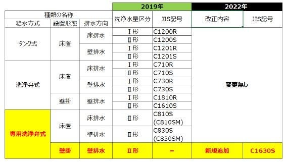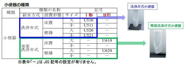 また、国際整合化とは別に大便器に関して壁掛形専用洗浄弁式大便器Ⅱ形のJIS記号追加等がされています。
