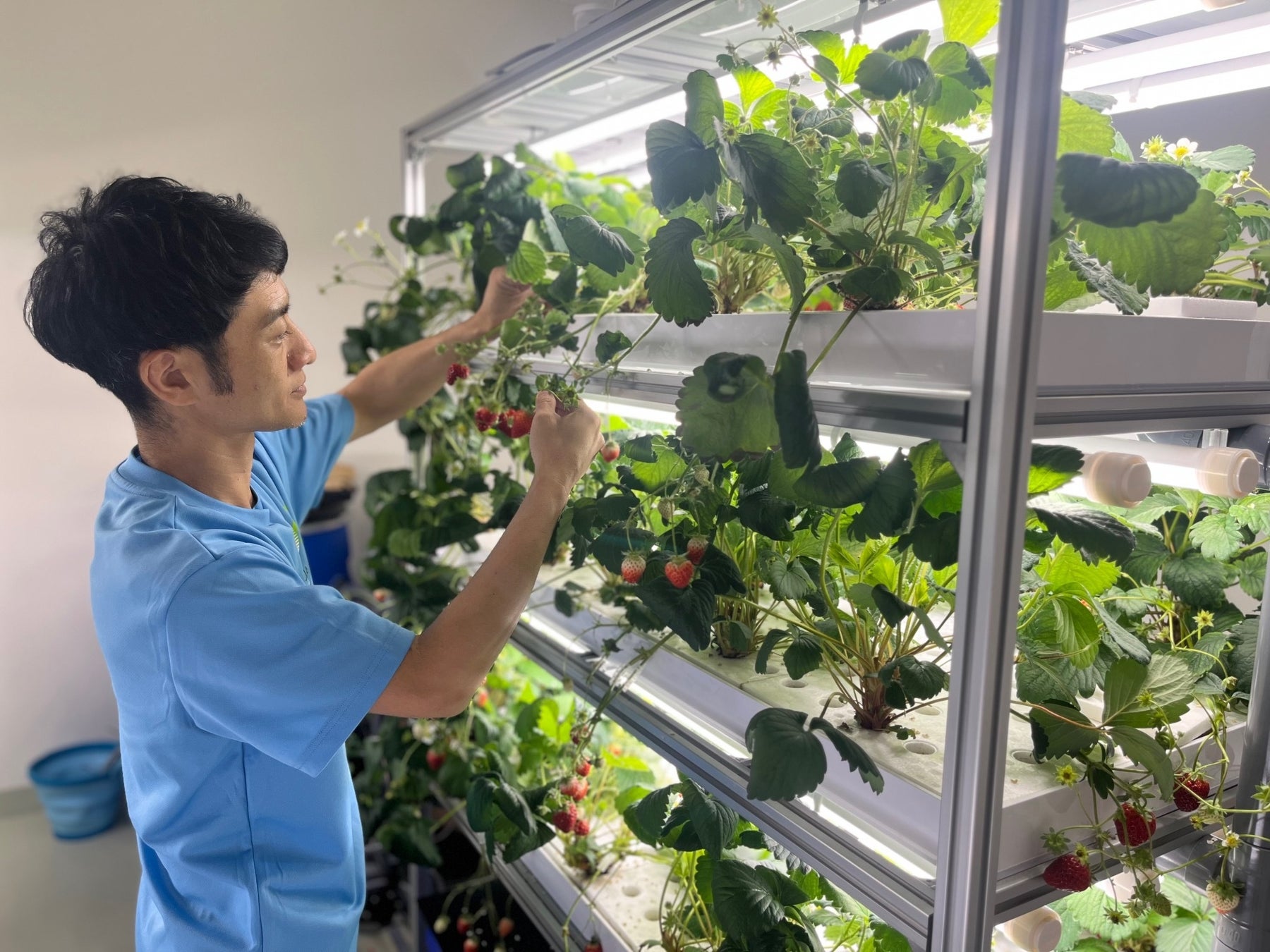 アクポニでは環境負荷の低い農法であるアクアポニックスで安定生産を実現すべく、2023年3月よりLED型植物工場の設計・施工を行う株式会社アグリ王(神奈川県横浜市)とアクアポニックスによるイチゴ栽培の共同実証実験を実施しています。