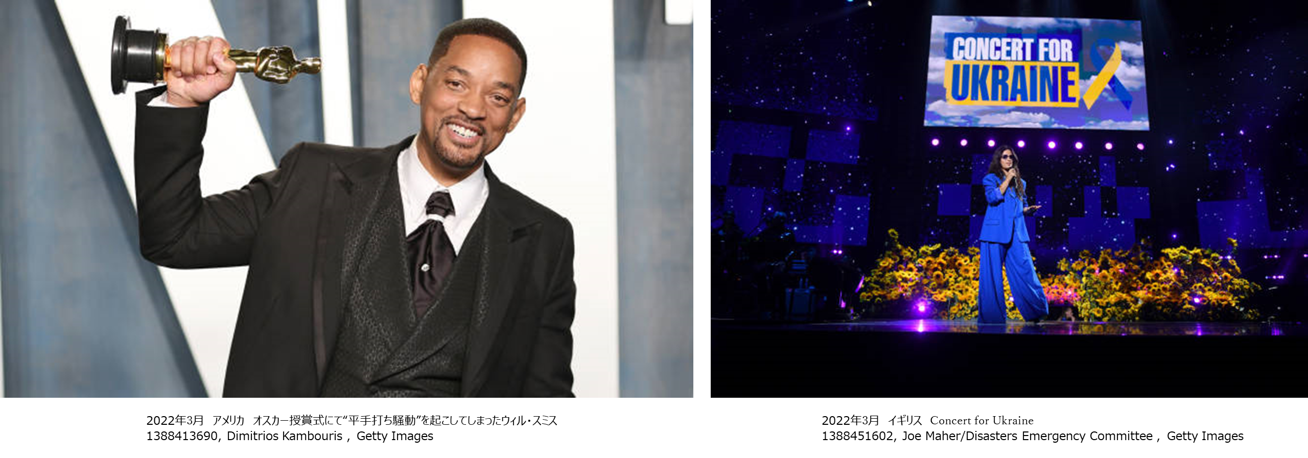 ウクライナで広まる非道行為とともに明けた2022年。世界的な紛争や批判的な選挙などにより、今年は世界のモラルに重大な影響を与えた年でした。それでも、精神的な健康を保ちながら変化のために立ち上がった人々。勝利と権利のために戦ったアスリートたち。目を見張るほど華々しい、エンターテイメントのひととき。多くの場面で人の心の強さを見せつけられました。ゲッティイメージズのフォトグラファーやビデオグラファー、そしてエディターによって作品を通して捉えられた本物の瞬間が、年間にわたってゲッティイメージズのクリエイティブ素材の検索にどう影響したかは、新ツール「VisualGPS Insights」で見ることができます。