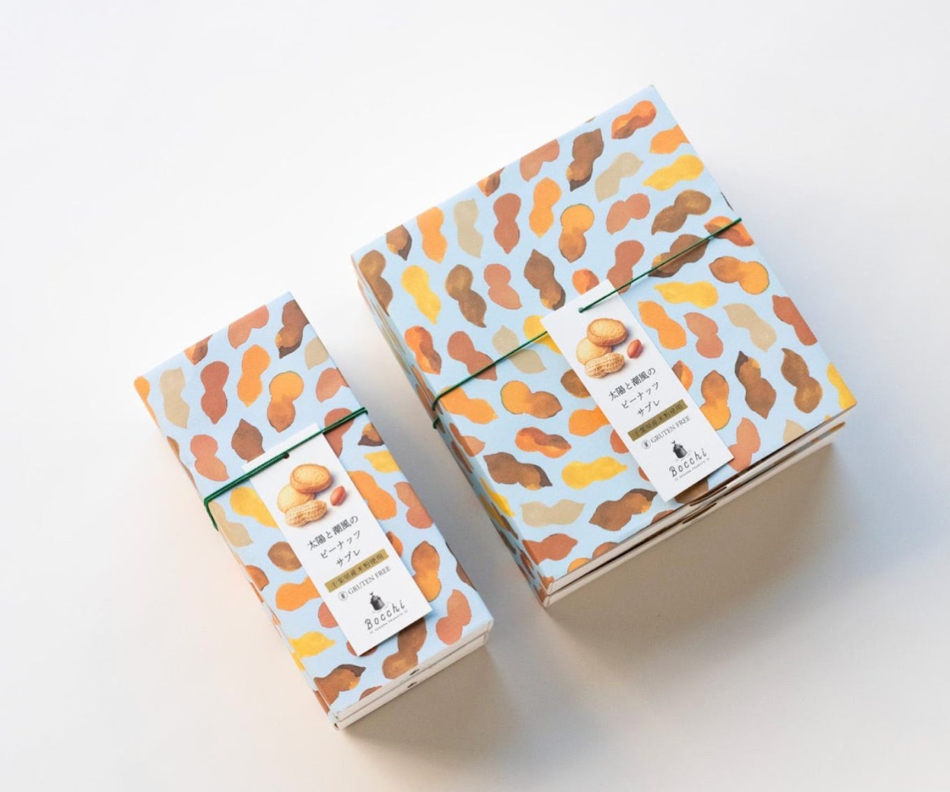 企画開発に5年もの年月をかけて完成した、ピーナッツサブレ。生産者とともに歩んできた私たちだからこそできる、自慢のサブレになりました。落花生と米粉・塩・卵は、半径10km圏内で取れた地元のものを中心に使用。また、パッケージの一部の作業を旭市の福祉施設「ヒバリワークショップ」の皆さんに依頼をし、農福連携を実現。私たちはこれからも、落花生ブランド・Bocchiを通して、地域の素材と人、人と人をつなぎ、次世代のために心を豊かにする食文化をつないでいきます。