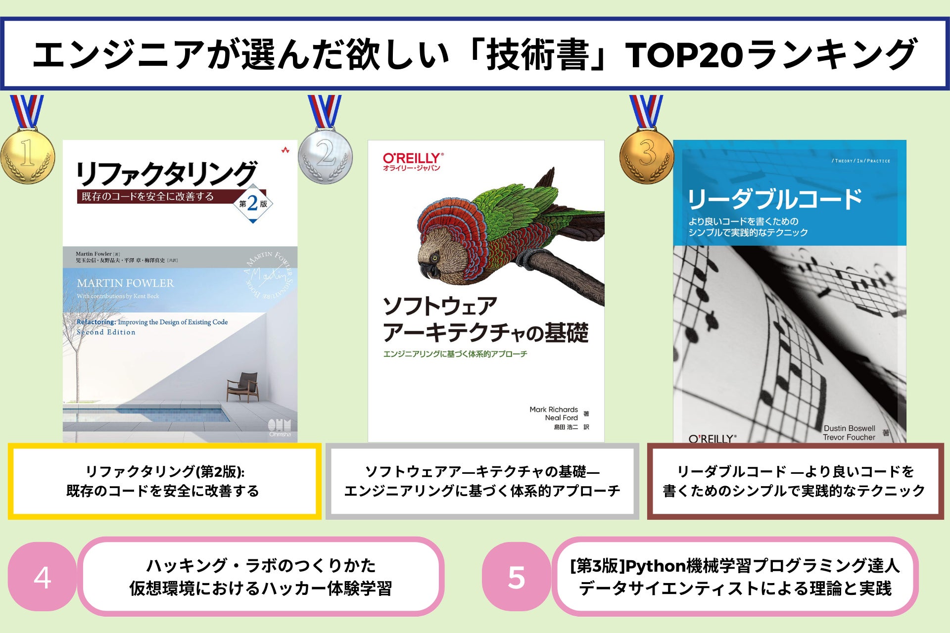 726冊の技術書を配布した中で、多くのエンジニアに選ばれたTOP3は、下記の3冊でした。「どの技術書を買うべきか」悩まれるエンジニアは、ぜひ技術書選びの参考にしてみてください。