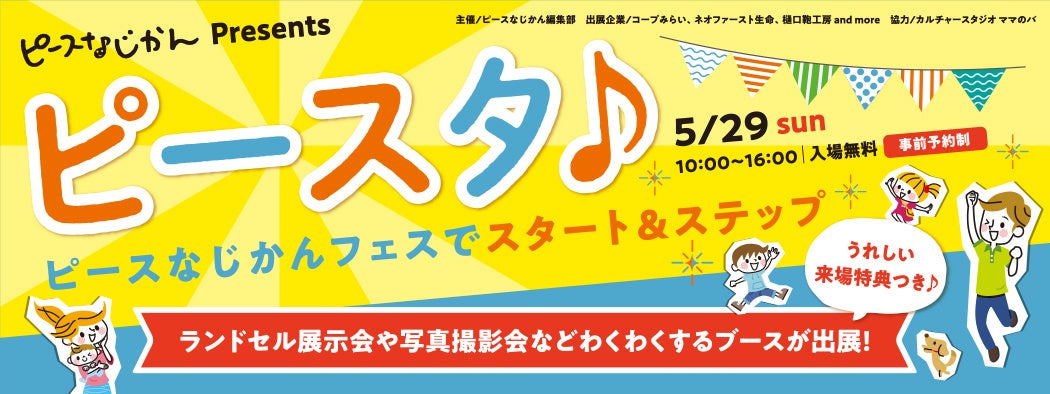 『ピースなじかん』は、この度、ファミリーイベント「ピースタ♪」を所沢市民文化センター ミューズにて、2022年5月29日(日)に開催いたします。