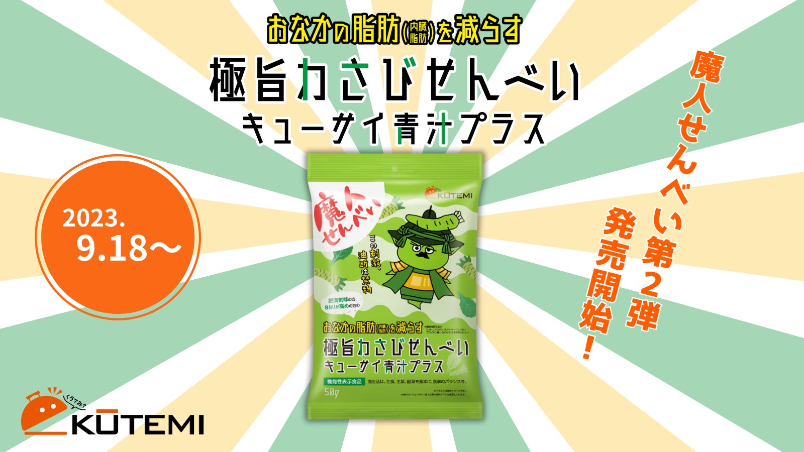 「おなかの脂肪(内臓脂肪)を減らす(※1)極旨わさびせんべい キューサイ青汁プラス」9月18日(月)販売開始!
