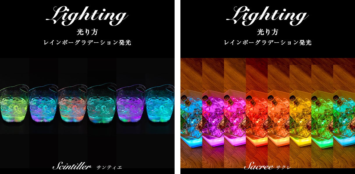 パーティーグッズからインテリアまで、「光るアイテム」の品揃えに特化した株式会社 HAPPYJOINT(本社:名古屋市西区 代表取締役:小山洋二)より、光るボトルクーラー「Scintiller (サンティエ)」と「Sacree(サクレ)」の2点を2023年1月25日(水)より販売開始します。