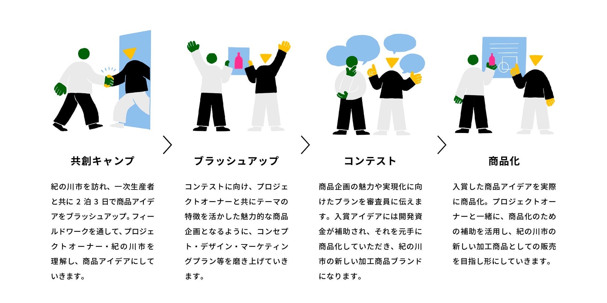 「Local Co-Creation Project in 紀の川」は、クリエイターが紀の川市の生産者の商品アイデアを共にブラッシュアップさせ、新しい紀の川市の加工商品認定ブランドを目指す共創プロジェクトです。