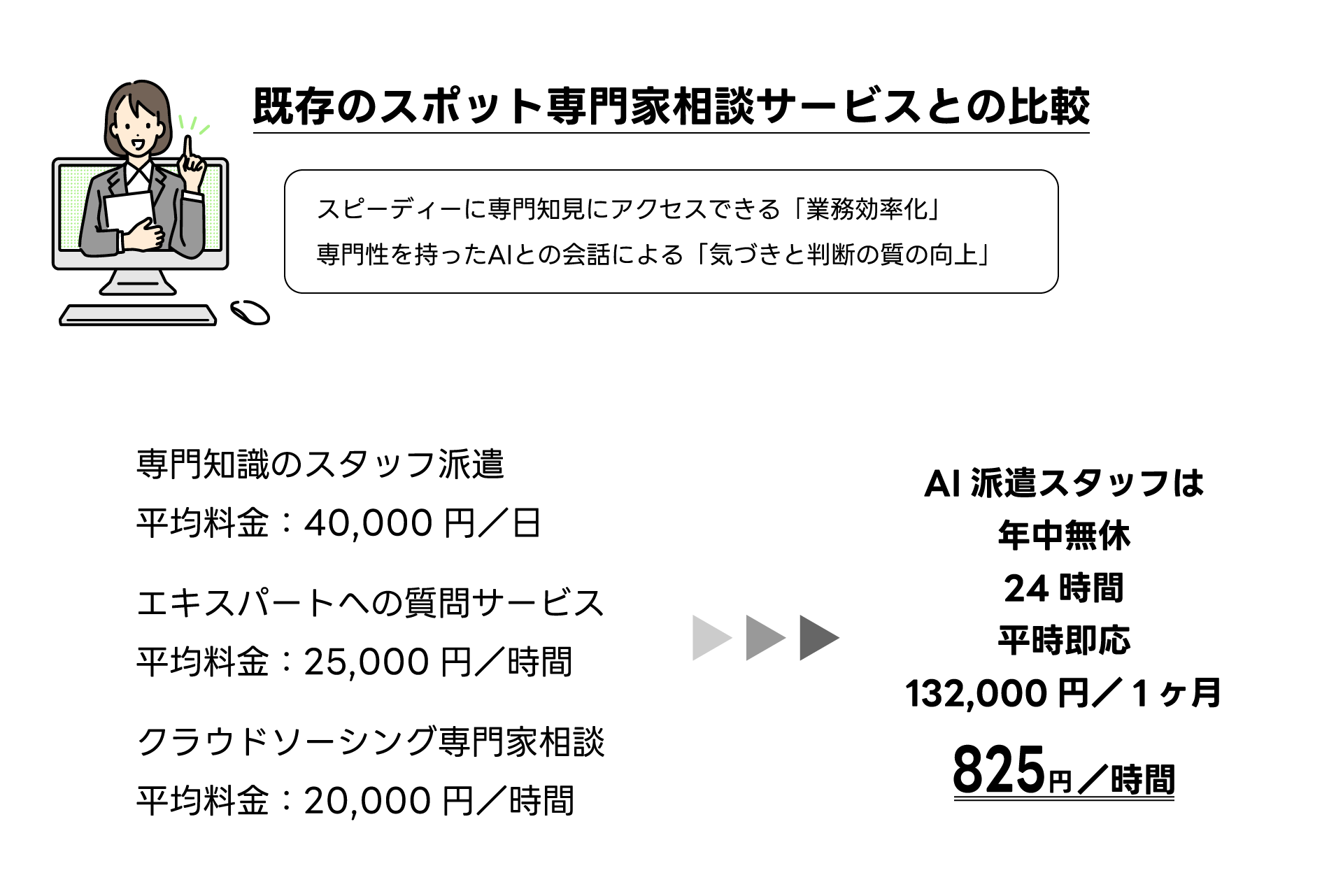 人間と異なり、24時間365日、気兼ねなく対応する「社内の頼れるAI派遣スタッフ」。