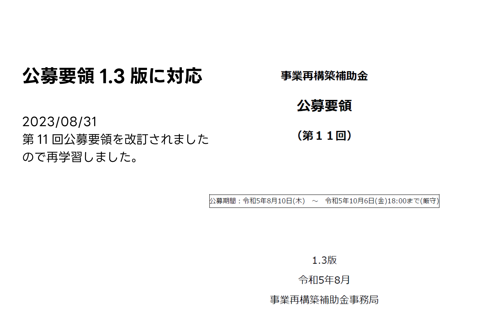 第11回公募要領改訂(1.4版):https://jigyou-saikouchiku.go.jp/pdf/koubo.pdf