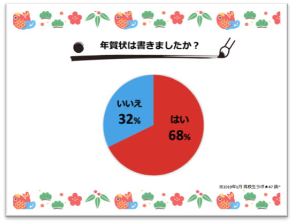高校生の年賀状事情の調査では、年賀状を書いた人は32%、書いていない人は68%となり、書いていないが大半となりました。