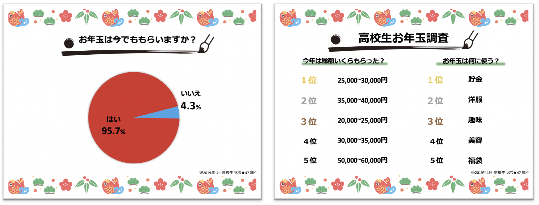 平成最後の高校生のお正月お年玉事情を調査したところ、約96%の人がまだお年玉をもらっているという結果となりました。