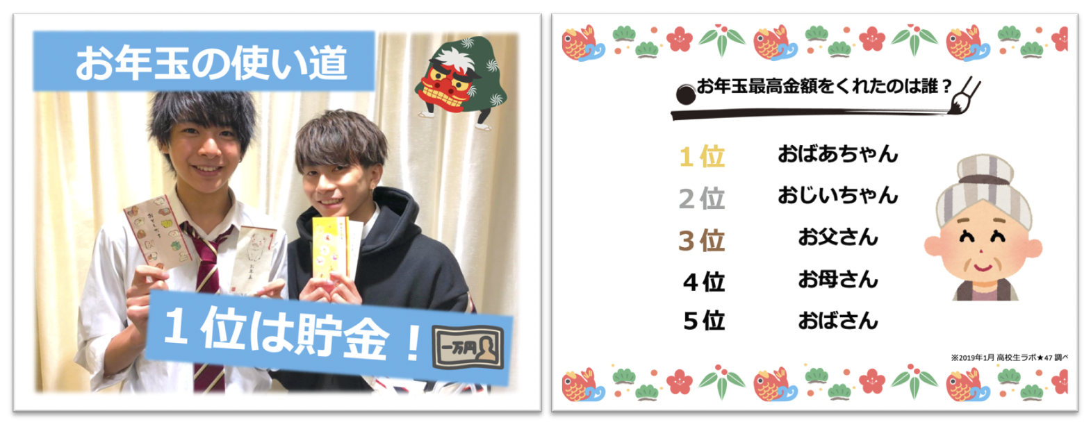 平成最後の高校生513名に“お年玉”“年賀状”事情を大調査1番お年玉をくれるのはおばあちゃんだった!高卒初任給相当の17万円貰う子も!?年賀状は“7割書かない”けど、貰うのはやっぱり嬉しい♪