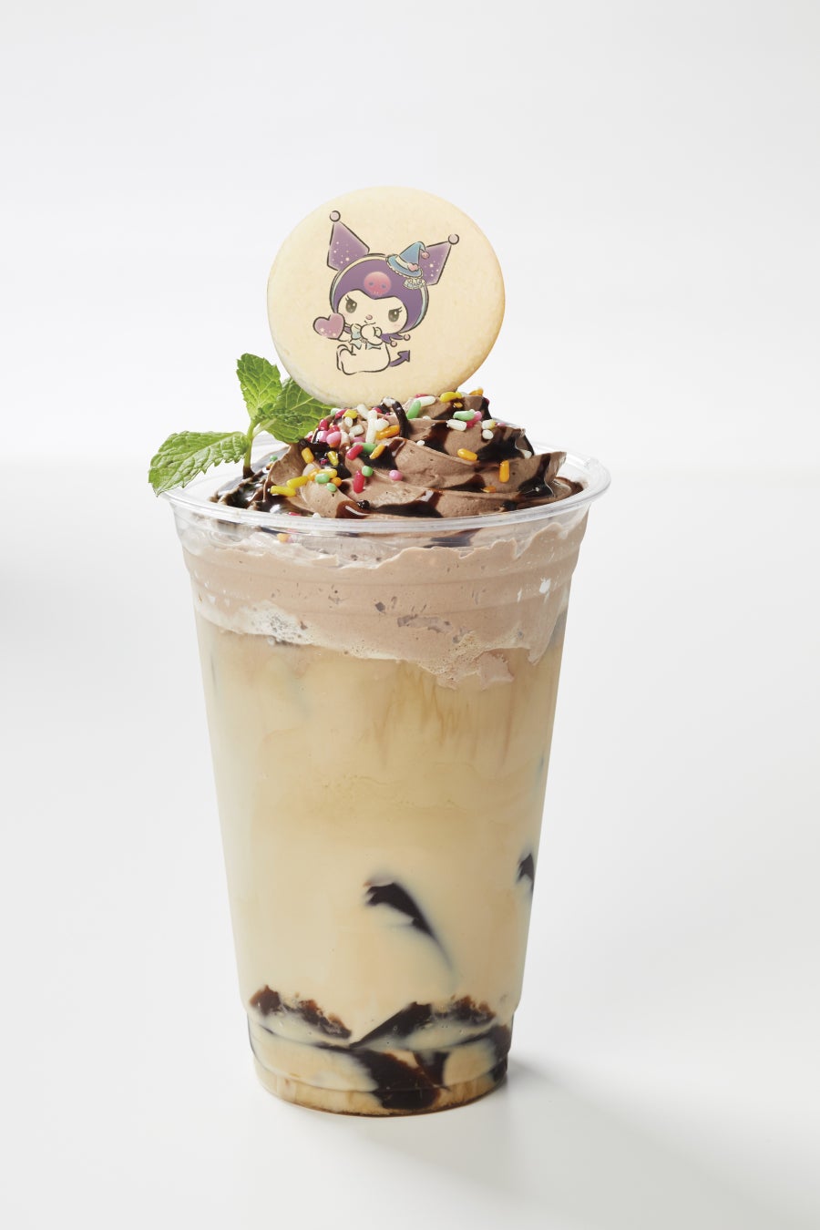 クロミをイメージしたチョコレートラテ。コーヒーゼリーがアクセント。