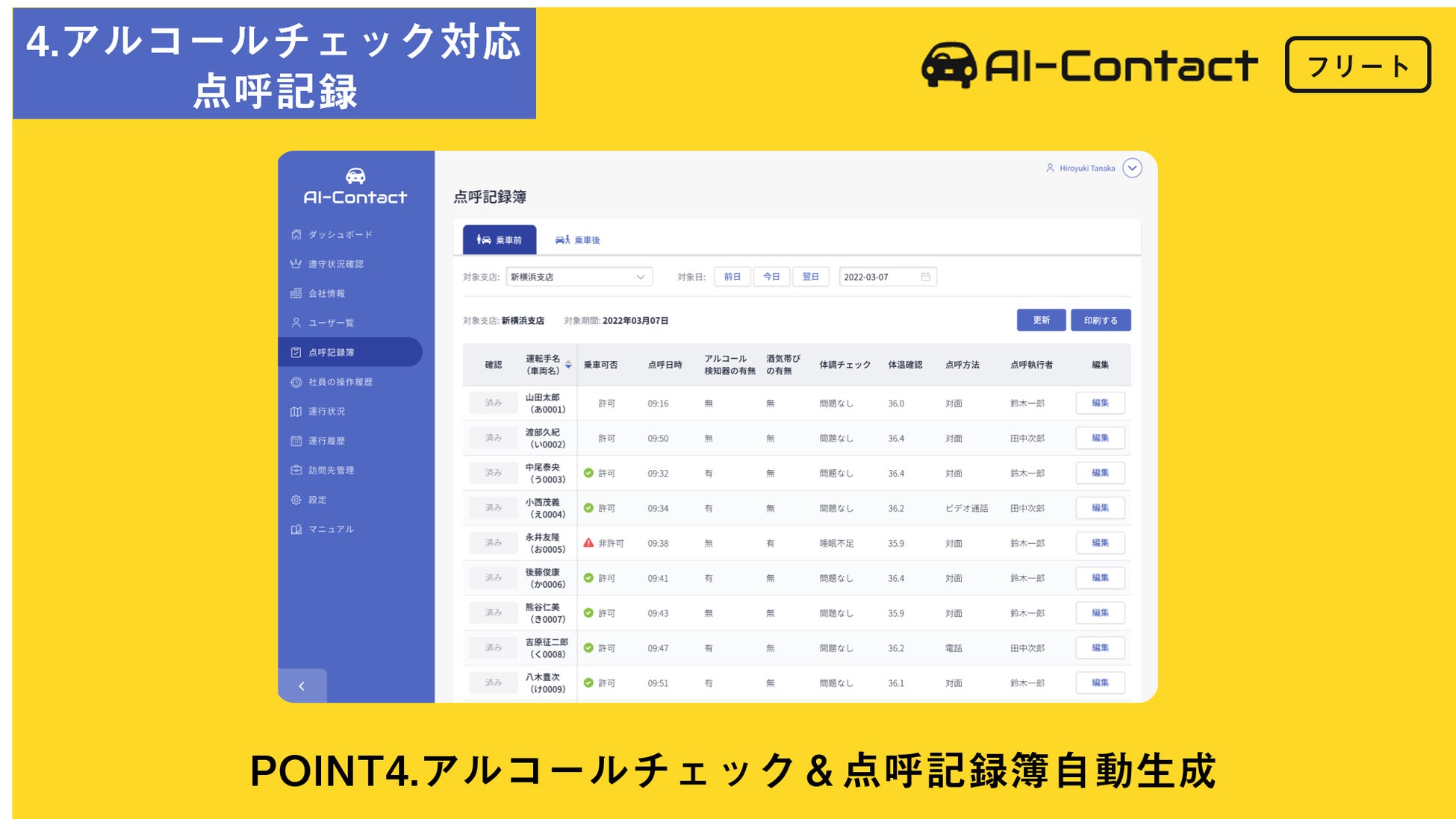 - 有料版「AI-Contact」製品を導入するなら今がお得!先着3万名様にアルコール検知器1人1台プレゼントキャンペーンを実施中!!