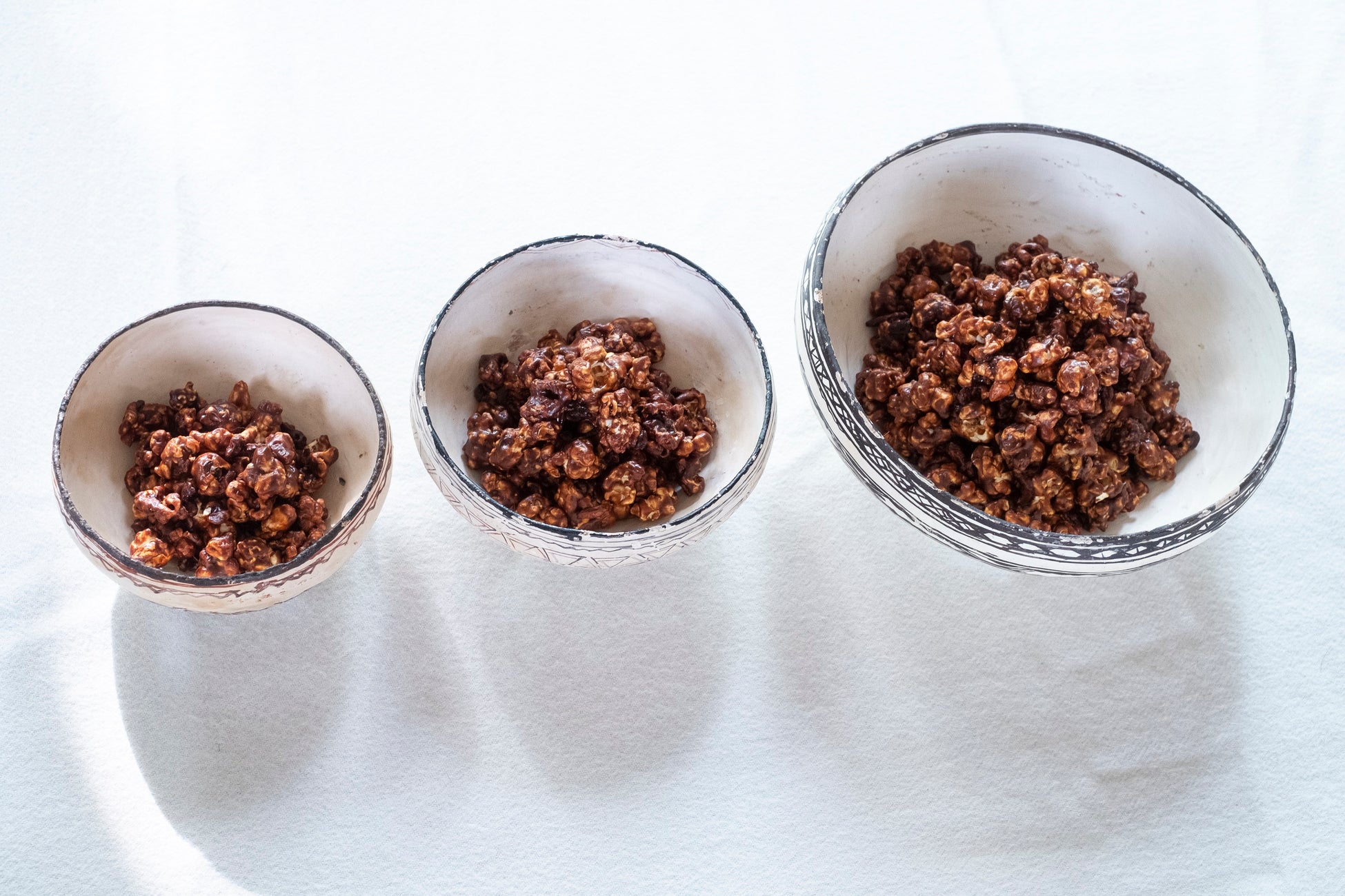 ペルー産の希少なクリオロ種のみを使用したショコラブランド。シェフの太田哲雄氏は、スペインやイタリア・ミラノ、ペルーなどの星付きレストランで経験を積み、食材の原種が溢れるペルーでカカオに魅せられ、料理を通じてカカオの魅力を広める活動をしています。レストラン兼お菓子工房の「LA CASA DI Tetsuo Ota」と「MADRE」にて提供している、アマゾンカカオを使用し一つひとつ手作りしたお菓子の中から、人気の「キャラメルポップコーン」を紹介します。