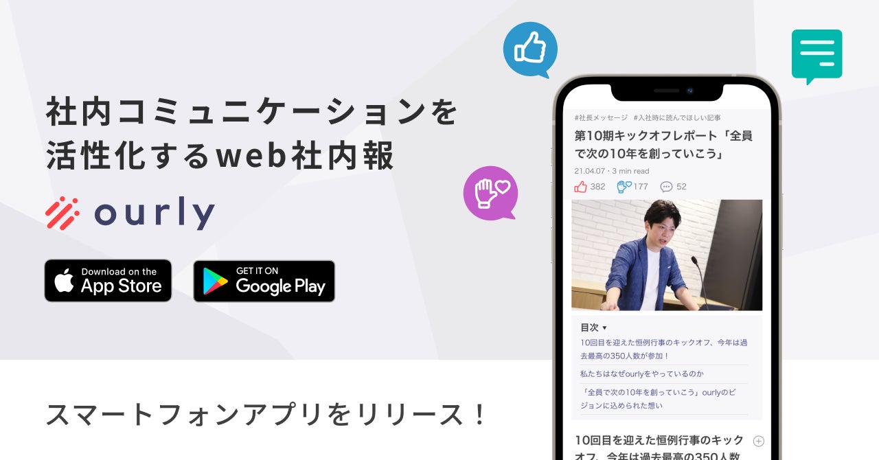 web社内報「ourly」、スマートフォン版アプリリリースによりノンデスクワーカーを抱える企業のDX化を促進