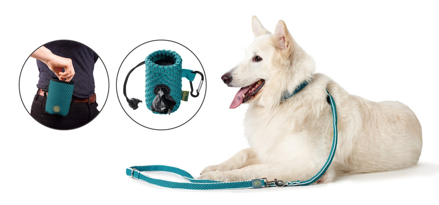 首輪、マナーポーチ(うんち袋入れ)、トリーツポーチ(携帯おやつ入れ)を取り揃えています。