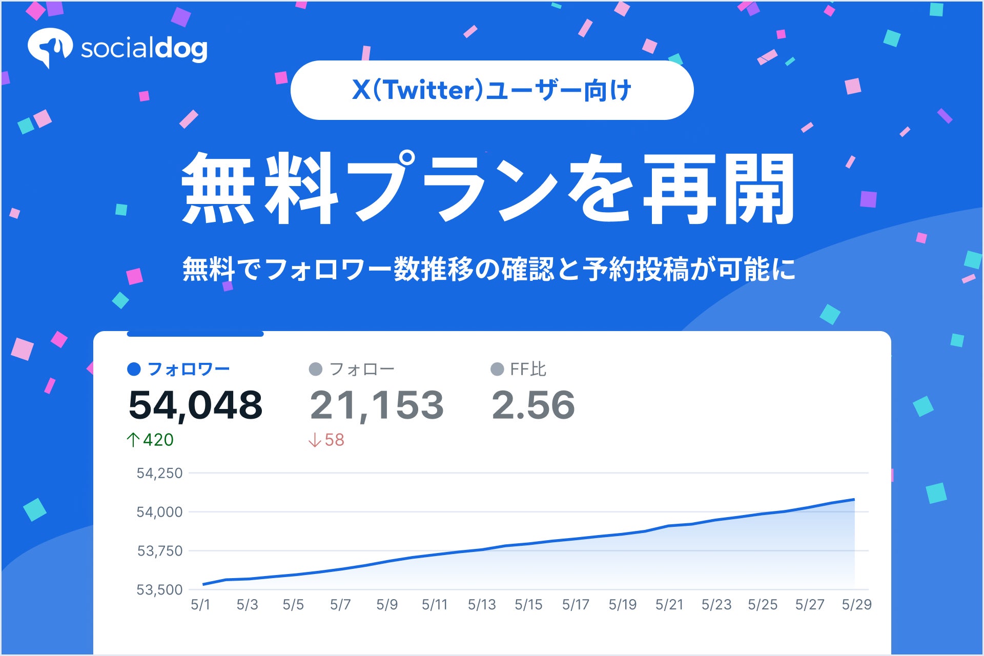 SNS管理ツール「SocialDog」、X(Twitter)ユーザー向け無料プランを再開〜フォロワー数などの基本的な指標の推移が無料で確認可能に〜