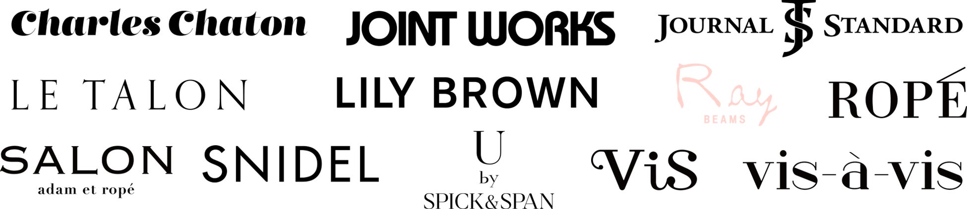 +diana / ANNA SUI / CALNAMUR / Charles Chaton / CHARLES & KEITH / dazzling / DRESSTERIOR / emmi / EMODA / EVRIS / FREE'S MART / GRAPEFRUIT MOON / HOKA ONE ONE / JOINT WORKS / jouetie / JOURNAL STANDARD / le coq sportif / LE TALON / LILY BROWN / Ray Beams / REDYAZEL / ROPE’ / SALON adam et rope’ / Samantha Thavasa / SNIDEL. / SPIRALGIRL / Top of the Hill / U by SPICK&SPAN / VIS / vis-à-vis / WEGO 他