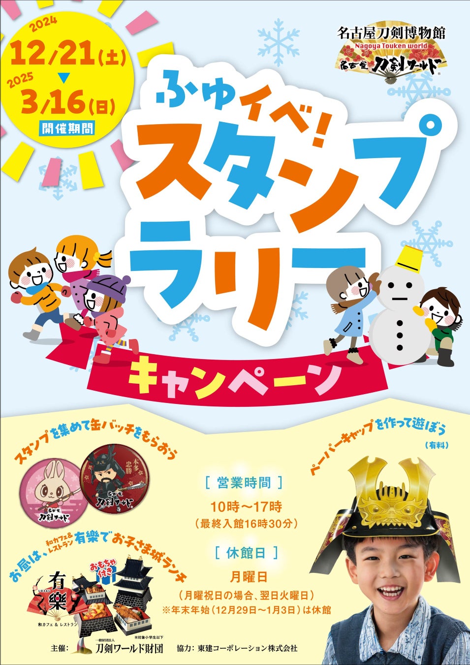 名古屋刀剣ワールドでは、家族みんなで楽しめる冬の特別イベント「ふゆイベ!スタンプラリーキャンペーン」を開催。博物館内に隠されたスタンプを集めると、名古屋刀剣ワールドオリジナルの缶バッチをプレゼント!