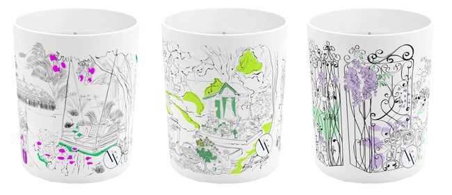 真っ白なガラス容器に軽妙なタッチで多種多様な美しい庭園を描き、それぞれの庭の特徴を香りで表現したコレクションです。キャンドルに火を灯すと、美しい庭園を散歩しているかのようなかぐわしい香りを楽しむことができます。