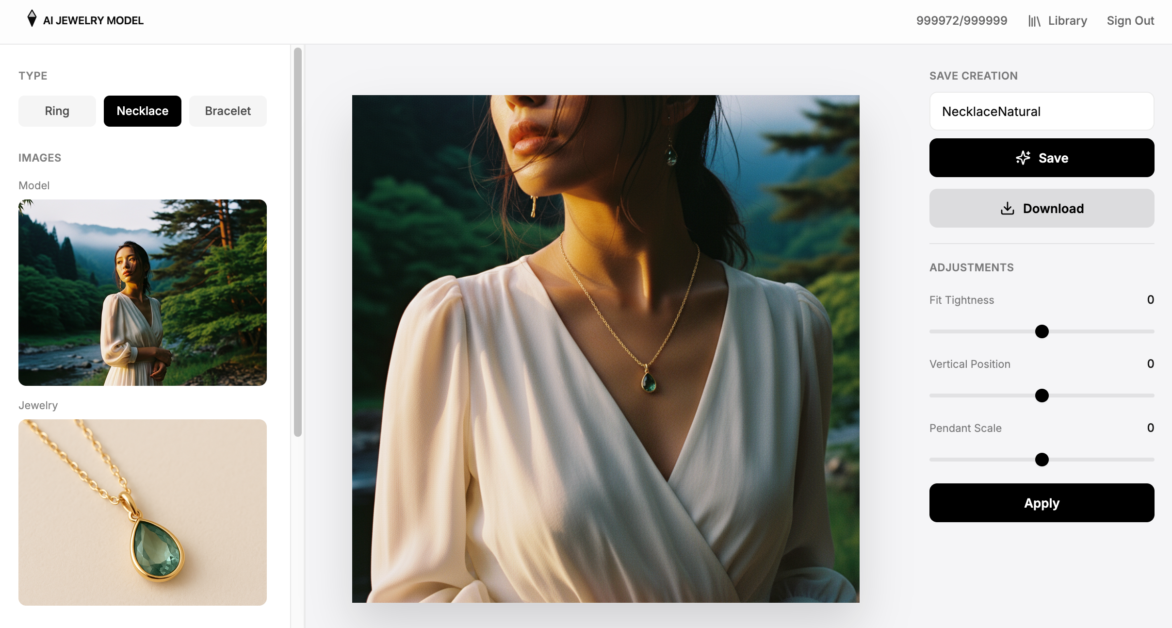 ジュエリー画像をアップするだけで、AIが人の画像を解析し、最適な角度と光でリアルな着用ビジュアルを自動生成します。