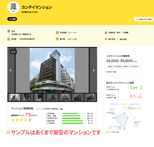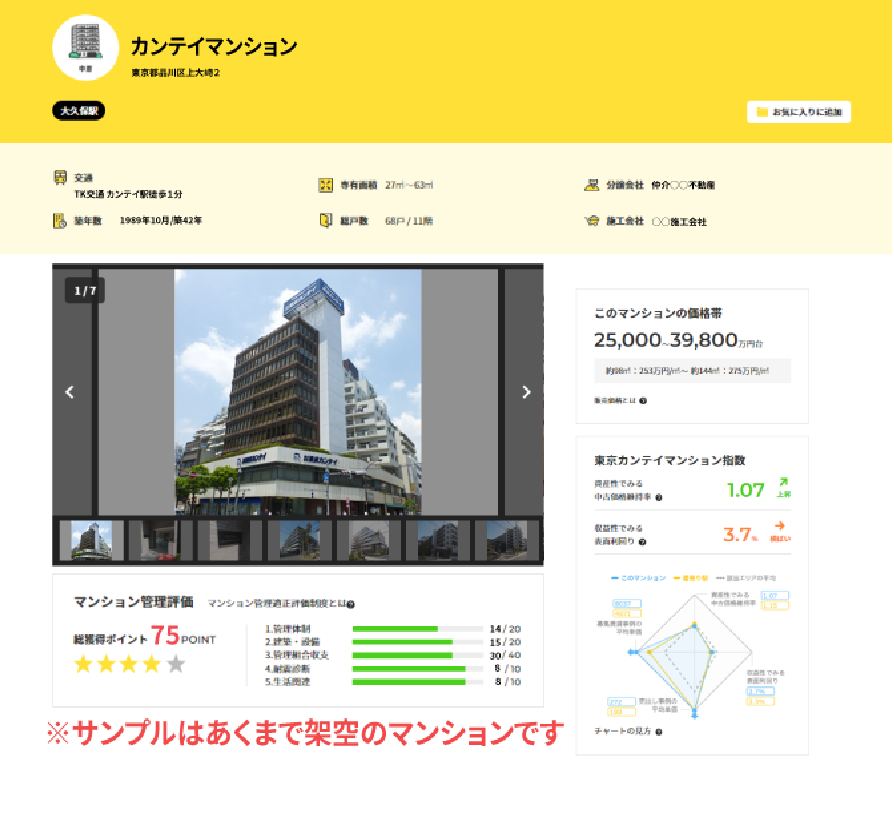 東京カンテイ「マンション図書館」の物件情報情報ページにて掲載中の基本情報や販売価格帯、専門家のコメント等に加えて管理評価の情報を掲載することで既存のデータに厚みを持たせることができました。
